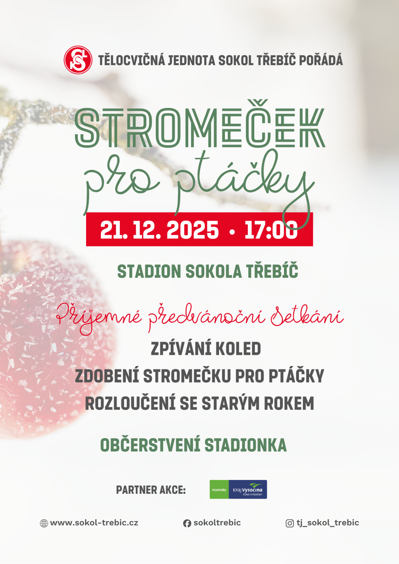 Zveme všechny sokoly a sokolíky na tradiční rozloučení se starým rokem, které proběhne na sokolském stadionu.